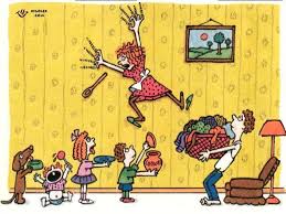 -Les feuilles qui tombent, mais pas d'un coup, et le vent qui s'amuse à les disperser juste au moment où on les a mises en tas et qu'on va les ramasser!